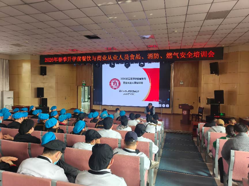 为切实筑牢校园安全防线,全力保障2026年春季学期开学平稳有序,切实守护广大师生身体健康和生命安全,3月4日下午,后勤保卫处邀请高陵区市场监管局食品科杜科长、刘老师和城区监管所党科长一行三人,在我校学术报告厅对餐饮与商业从业人员进行2026年春季开学前食品安全专题培训会。随后由学校后勤保卫处消防专员英杰老师对在场所有人员进行燃气和消防安全培训。